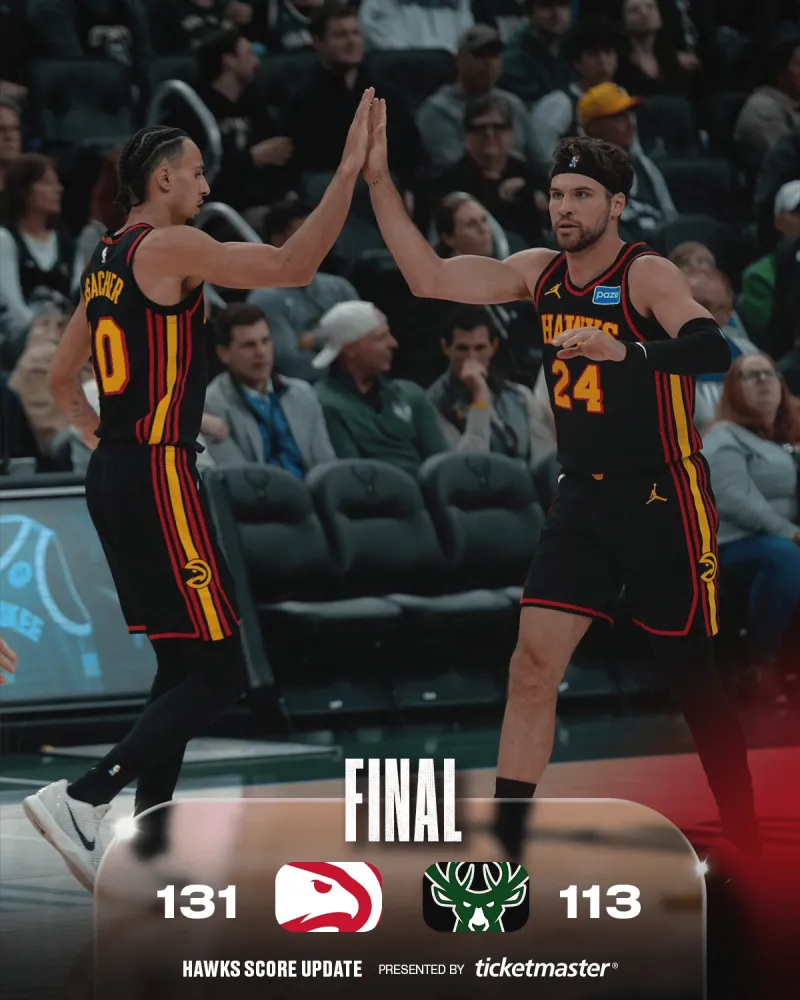 虎扑03月05日讯 今天NBA常规赛老鹰客场对阵雄鹿的比赛已经结束。全场战罢,老鹰以131-113战胜雄鹿。